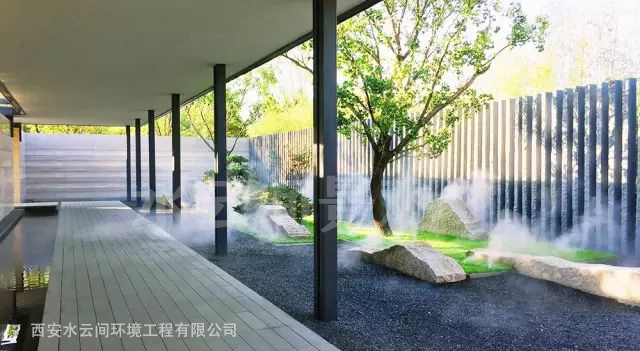 在庭院別墅中加入霧噴效果,可營造飄渺霧效,讓庭院景觀不在單調(diào)。滿足了人們對美好環(huán)境的追求,飄渺靈動的霧效可以讓庭院景觀更添一份神秘、優(yōu)雅。同時水霧有降溫、降塵凈化空氣的作用。