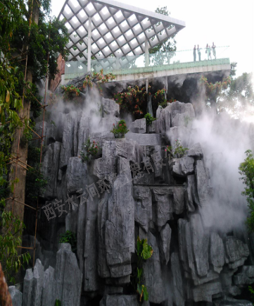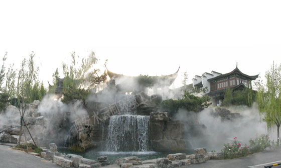 1.造景和保濕:霧既可輕盈婉約,虛無飄渺,又可溟溟漠漠,浩浩漫漫,即可單獨(dú)成景,自成一方天地,又可結(jié)合水系、假山、綠植、燈光等各種元素而形態(tài)各異,相得益彰。其變化多端的形態(tài)和功能,將為中國園林的景觀意境更添水墨元素。其特有的保濕功能,能更好的兼具植物的養(yǎng)護(hù)和生長;