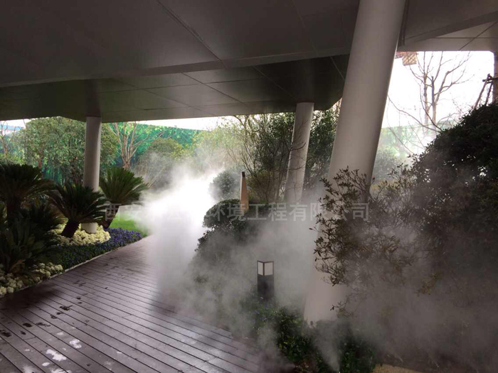 高檔住宅小區(qū)霧噴系統(tǒng)景觀造霧,勝似仙境,提升住宅居民品質(zhì),享受高檔生活品質(zhì),身臨其中,若隱若現(xiàn),如夢幻似仙境,美妙絕倫。置身其外,瞥見那云霧繚繞的美景更是會浮想連翩。此項(xiàng)技術(shù)的運(yùn)用可以增加景觀的視覺效果,通過其釋放大量負(fù)離子有益于人體身心,并且夏天還可以對周圍環(huán)境起到降溫作用。