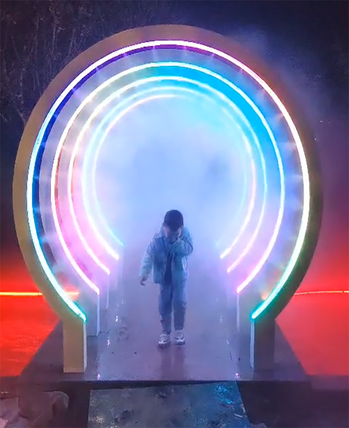 我公司為商洛市南秦河生態(tài)公園定制“網(wǎng)紅水霧門”項(xiàng)目投入使用